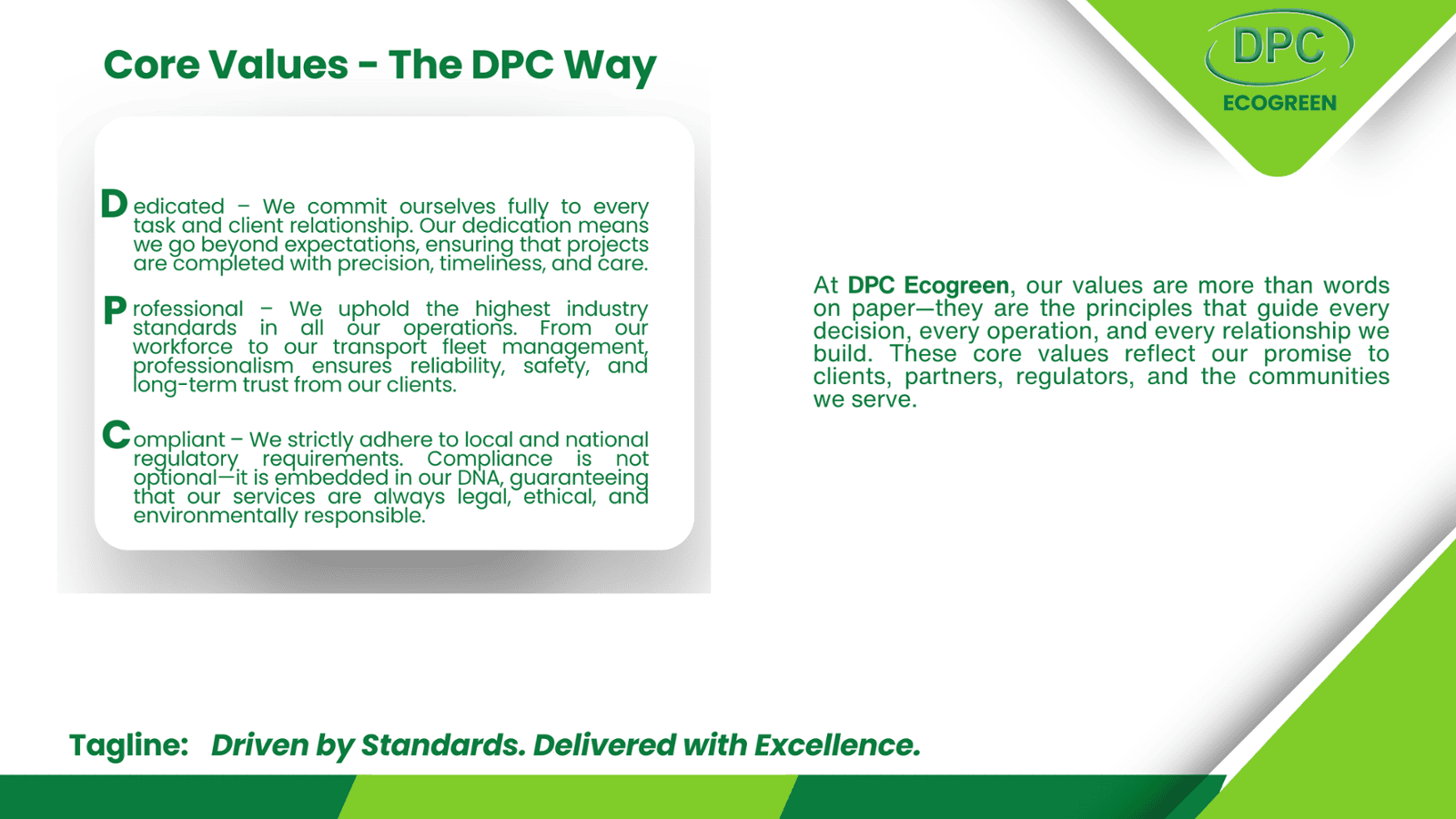 •With the demand for larger operations, nationwide coverage, and greater accountability, DPC Ecogreen Inc. was incorporated in 2020 as the holding company of DCH.
